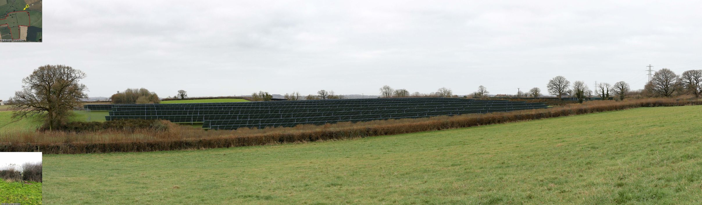 Below are a selection of computer generated images prepared by PACE to illustrate what the solar farm would look like. Use the slider below to see a recent photograph before (left) and expected view after development (right). Once available, you can also download these in the downloads section.